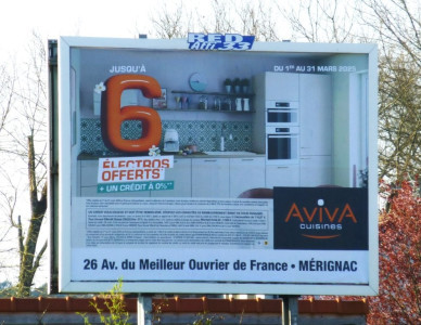 Le magasin Aviva de Merignac affiche sur notre réseau Primo Rive Gauche de Bordeaux